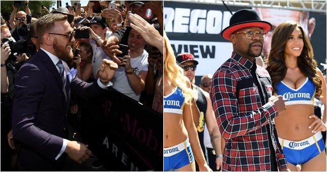 The pair took to the stage outside the T-Mobile Arena on Tuesday to greet the fans in attendance for their August 26 super-fight and their behaviour spoke volumes about their character.
