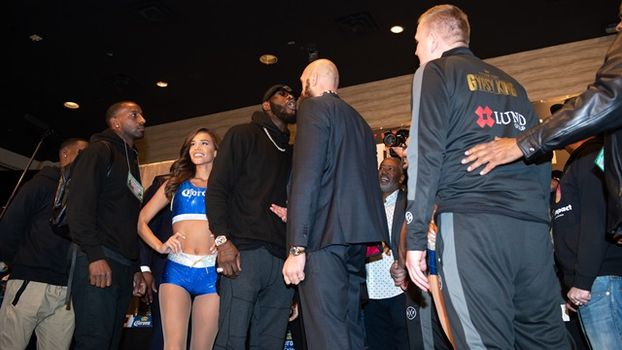 The two undefeated heavyweights almost came to blows on Wednesday, when Fury took umbrage with a scrape to his forehead from a wayward Wilder finger.