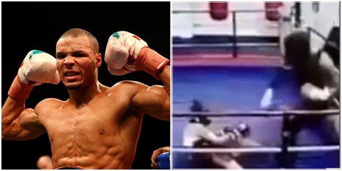 Caught on gym CCTV, Eubank Jr catches him with a rapier-like right-left combo and drops him to the canvas.Champion Blackwell was less than impressed by what he saw.