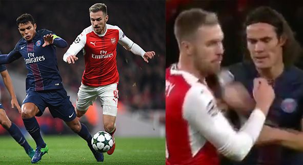 Cavani punch on Ramsey! #ARSPSG pic.twitter.com/RGNoqD7vtI