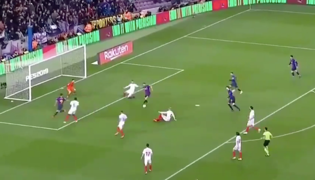 The Brazilian then played a low ball across the front of the six yard box. It comes to Jordi Alba, who briefly seems to consider taking a shot before presumably realising that assists for Lionel Messi are his lifeblood.