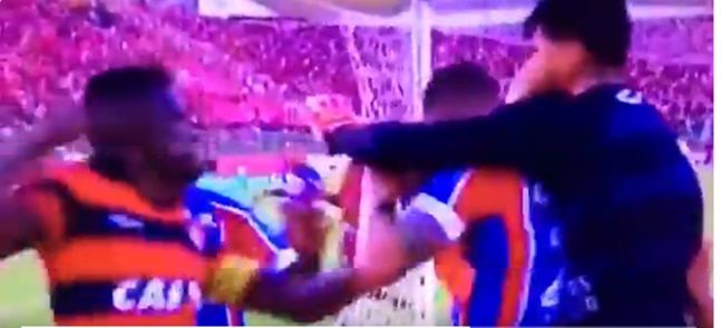 Bahia midfielder Vinícius sparked the brawl when he equalised from the penalty spot after half-time and celebrated with a provocative dance in front of the Vitoria supporters.