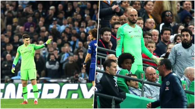 Maurizio Sarri tries to substitute Kepa Arrizabalaga for Willy Caballero, but Kepa refuses to come off and Sarri is absolutely FURIOUS! 😡 pic.twitter.com/Q81v6ry3Kk