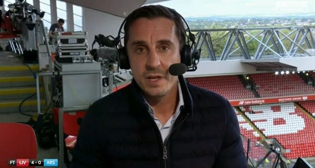 Gary Neville was furious watching Arsenal on Sunday. Arsene Wenger’s side lost 4-0 to Liverpool at Anfield, and put in a humiliating performance. Neville was on commentary duty for Sky Sports, and was appalled by what he witnessed.