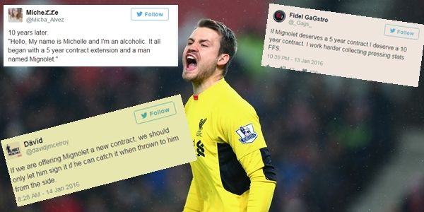 "Hello, My name is Michelle and I'm an alcoholic. It all began with a 5 year contract extension and a man named Mignolet."— Micha Alvez* (@Micha_Alvez) January 13, 2016