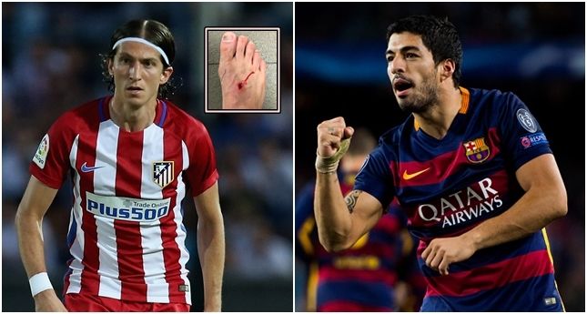 Luis Suarez leaves Filipe Luis with a nasty scar, and tells him to stop complaining