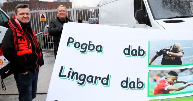 The banner reads ‘Pogba dab’, with Paul Pogba dabbing; ‘Lingard dab’, with Jesse Lingard dabbing; and then ‘Gerrard dab’, with Steven Gerrard slipping and looking a bit (but not really at all) as if he may be doing something remotely similar to dabbing too. That’s it – that’s the gag.
