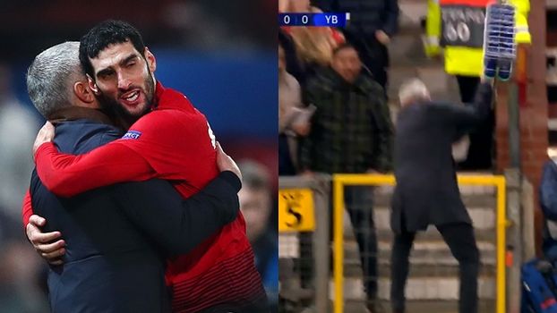 Mourinho picked up a tray of water bottles and slammed them off the ground.