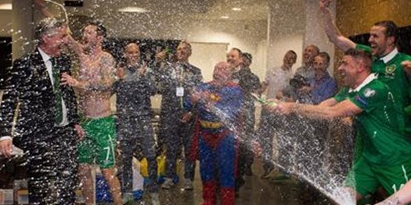 FAI Chief Executive John Delaney visits the dressing room… at the expense of his suit! #EURO2016 pic.twitter.com/gBtCzZL1qS