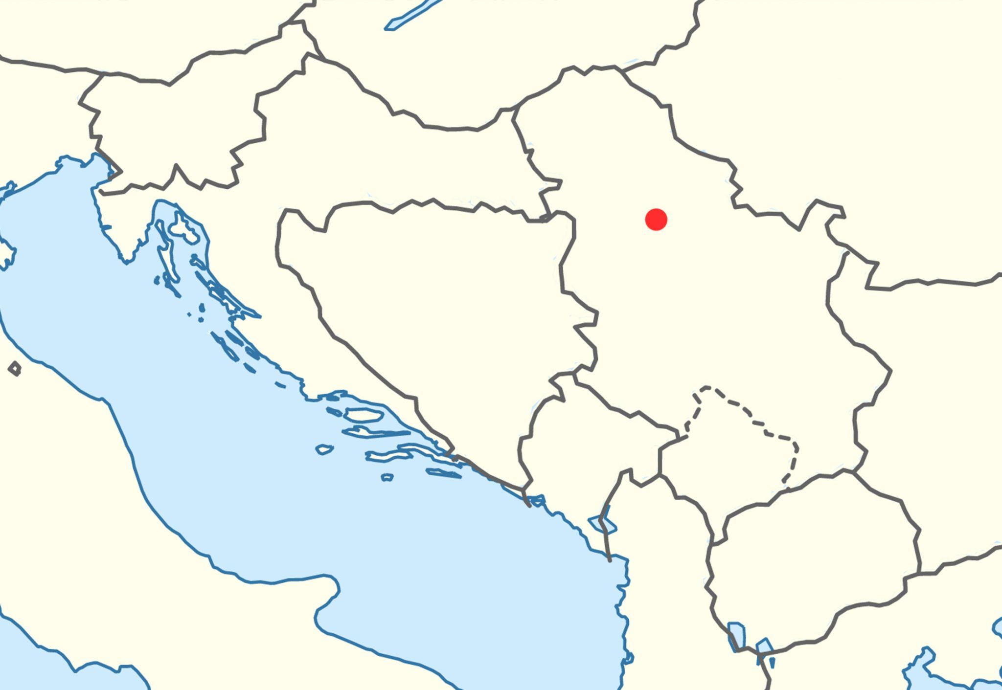 15 pictures, all showing part of a European map with a small red dot on each one. All you have to do is work out which of the three European clubs pictured below them play their home games where the red dot is located.