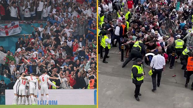 With an estimated 200,000 fans gathering in the area surrounding the stadium ahead of the Euro 2020 final against Italy on Sunday, several videos were posted to social media showing fans – presumably ticketless – storming barriers in attempt to get inside.