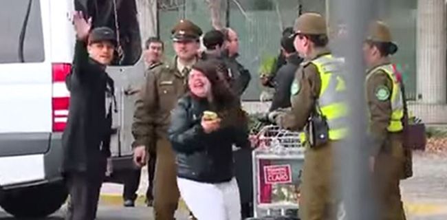 One Chile supporter could not contain her excitement upon seeing the Arsenal superstar and darted towards him at Santiago airport. She sprinted across the road but was stopped in her tracks by a group of police officers securing the area.