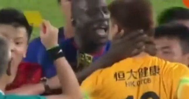 The former Newcastle and Chelsea striker almost took his opponents head off in the 2-2 draw between new side Shanghai Shenhua and Guangzhou Evergrande.