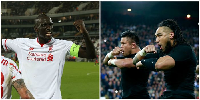 The antipodean rugby stars performed their traditional pre-match war dance Haka for Liverpool players at Melwood training ground.