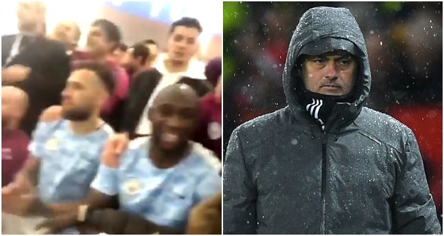 A video emerged on Saturday evening of the City players in their dressing room following the victory over Spurs, and a chant about United, and Jose Mourinho’s tactics in big matches, can be heard.