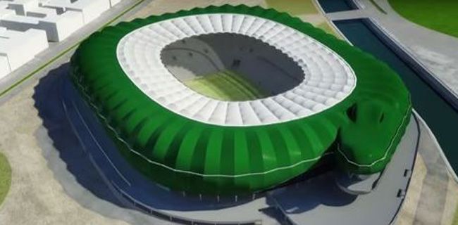 Turkish outfit Bursaspor are in the process of building a brand spanking new stadium. Here’s the kicker, it’s shaped like a giant, green, aquatic retile.
