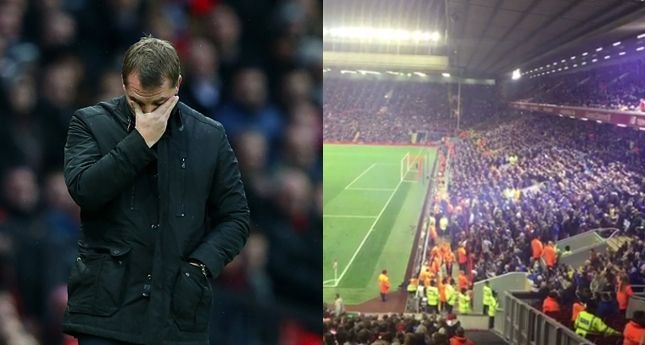 However, they were being held 1-1 at Anfield by League Two Carlisle United, and the away fans took great pleasure in Rodgers’ misery.
