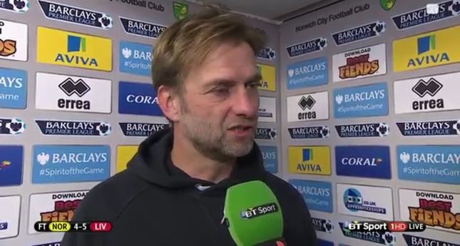The German was euphoric when Adam Lallana scored the last minute winner against Norwich City in a 5-4 thriller, losing his mind and his glasses as his players rushed to celebrate with him.