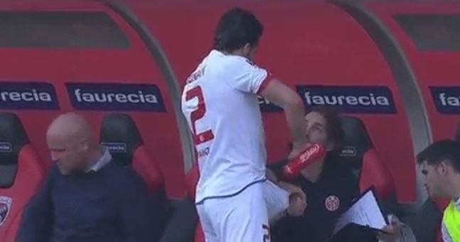 Instead, the Italian pulled open his shorts and took a healthy squirt of water right to the balls.