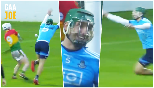 “The Carlow lads came in on top of him then and he was kind of laughing like ‘what else could I do?’ Fair play to him, he stayed going. I tried that block down without a hurley before, but you’re doing it on instinct more than anything – but at the end of it, you’re just saying, thank God I didn’t block that ball down – it’s just stupid, you’re trying to block a hurl with your hands, and there’s only one winner there…”