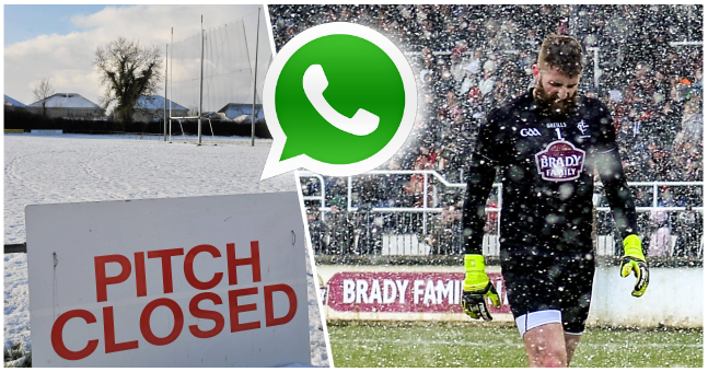 In Cork and Laois, some hardy teams went at it still but a lot of club players elsewhere would’ve received word on Tuesday or Wednesday that their sessions have been cancelled. Either the pitches are unusable, the risk of travelling wasn’t worth it and the games are all being postponed anyway so just try and get some sort of exercise done yourselves if you can.