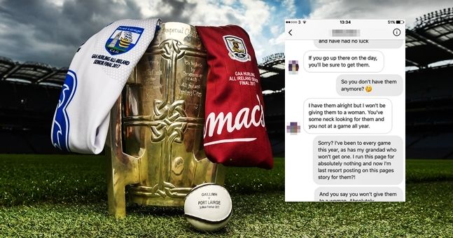 She stuck out a post asking if any hurling fans were selling spare tickets or knew of anyone she could get in touch with. Within 20 minutes, she was contacted with an offer or a pair of tickets. That is where her luck ran out.