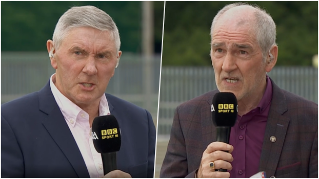 However, he was quick to call out Oisin McConville and warned him about “minding his language” when he described Derry as “defensive” and even the more seasoned and experienced pundit, Martin McHugh, wasn’t safe from the three-time All-Ireland winner.