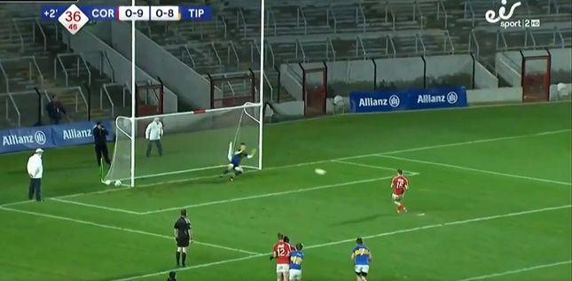 Cork win a penalty on the stroke of half-time but it's saved by Evan Comerford! #AllianzLeagues #MatchNightLive pic.twitter.com/XCODfNuMas— eir Sport (@eirSport) January 27, 2018