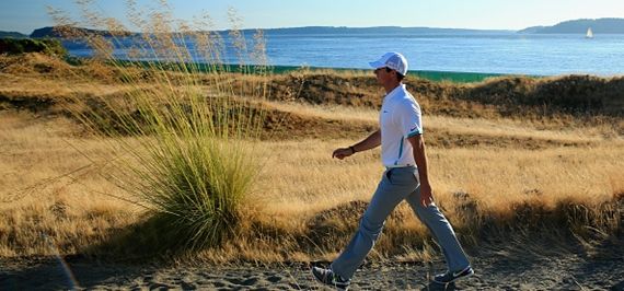 But the picture of Rory McIlroy that is doing the rounds sums up just what a mammoth task the golfers are facing in the Washington course.