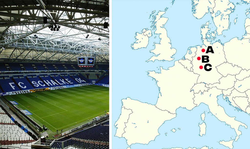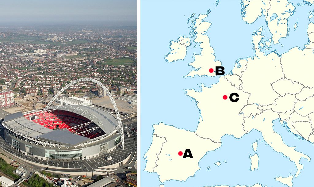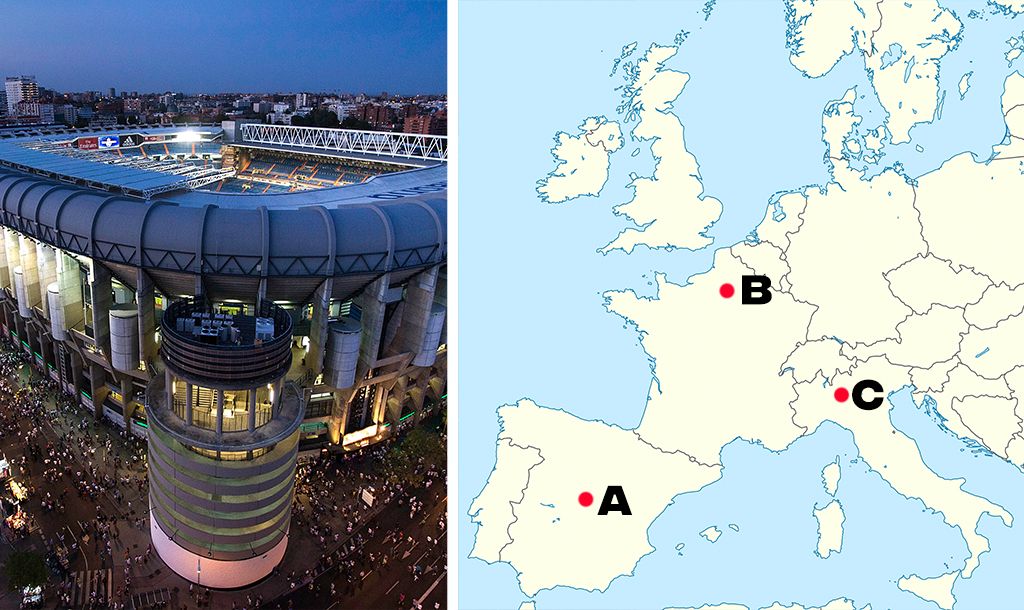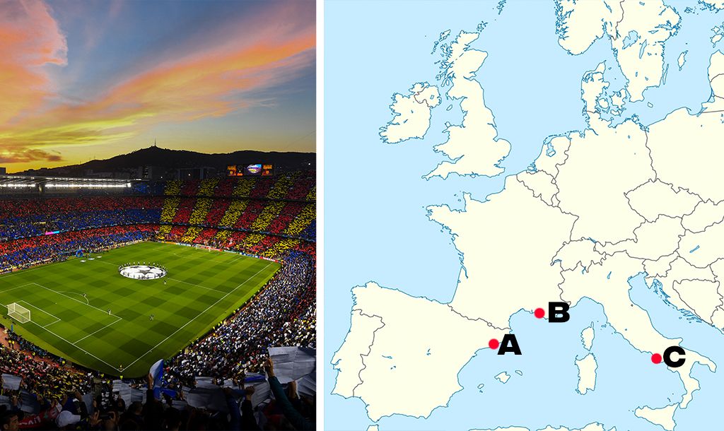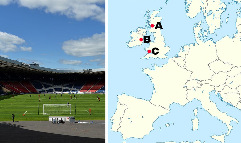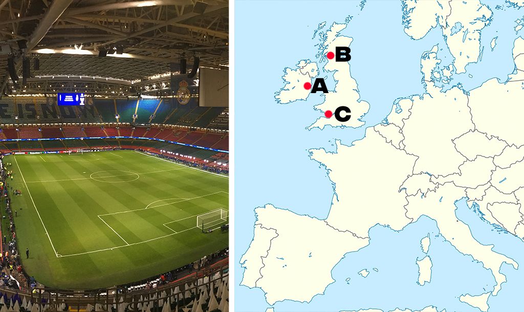 All you need to know is identify which point on the map each stadium would be found from the three multiple choice answers we give you. It sounds easy and it definitely might start off that way but trust us, it probably will get trickier as it goes on.