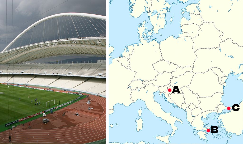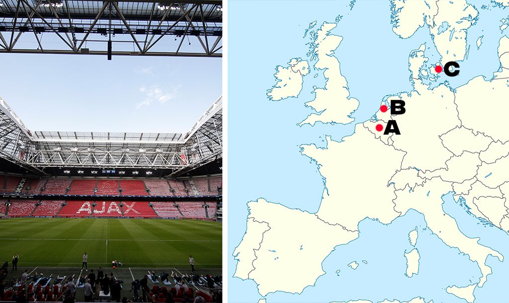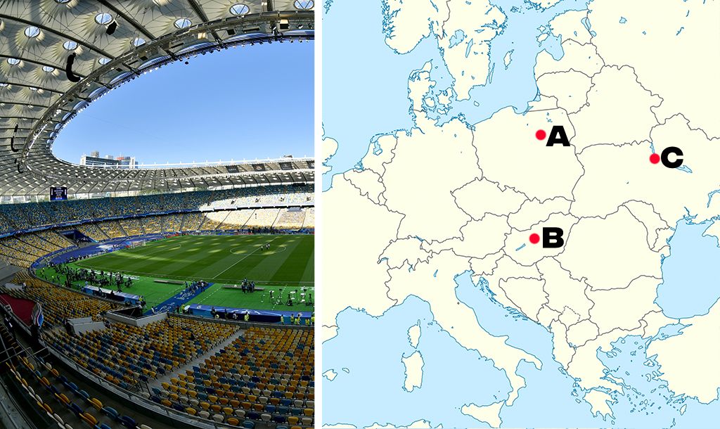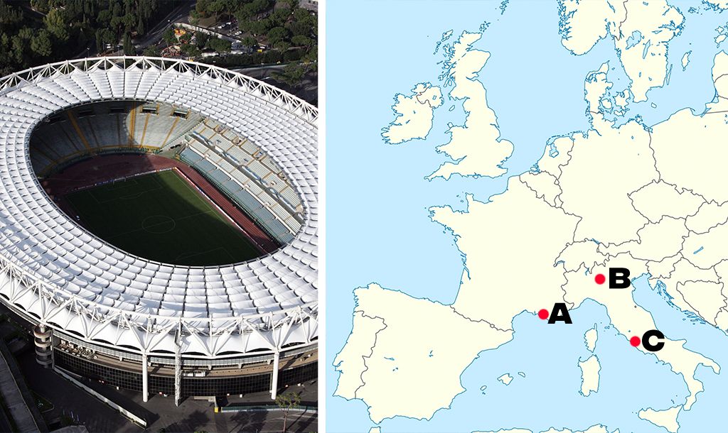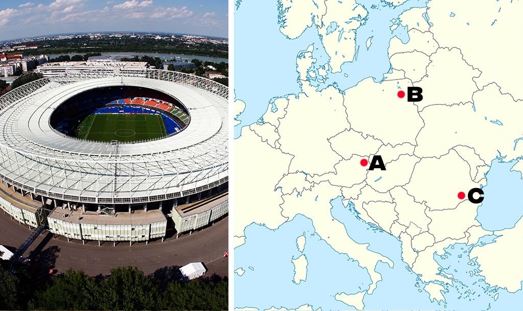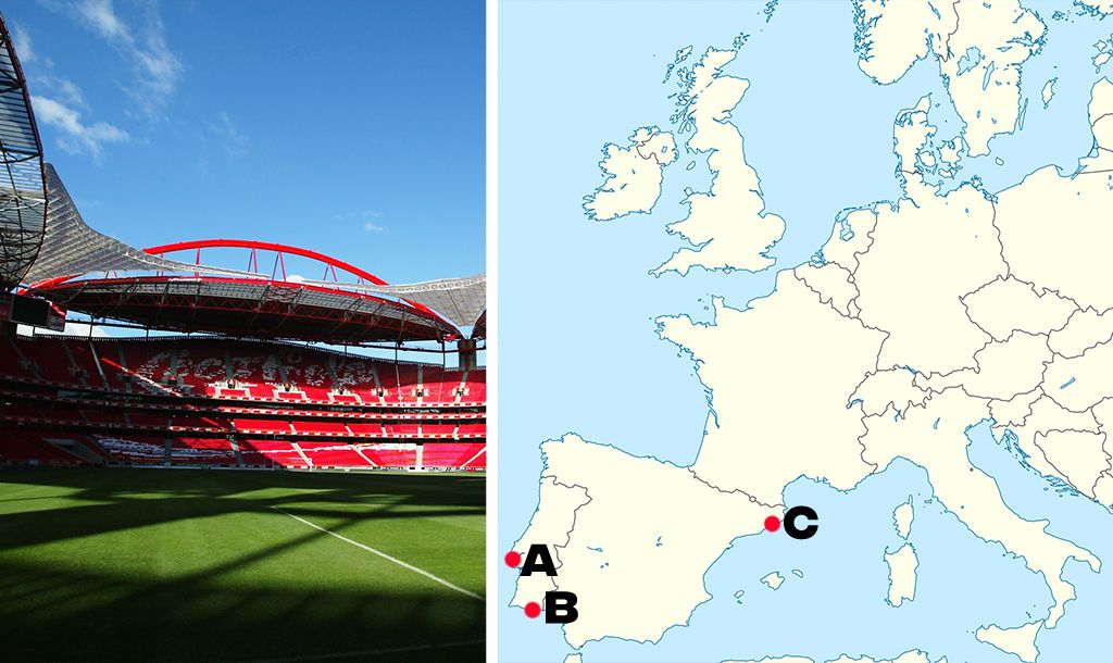 All you need to know is identify which point on the map each stadium would be found from the three multiple choice answers we give you. It sounds easy and it definitely might start off that way but trust us, it probably will get trickier as it goes on.