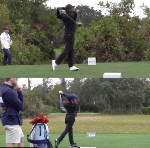 Who is this with his son?