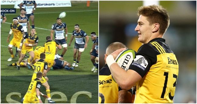 Trailing 13-5 midway through the first half, Hurricanes scrum-half TJ Perenara pinged a pass off the head of prop Ben May. The pass was a tad high and it richoted off the forward’s head before bouncing up and over the Brumbies defence.