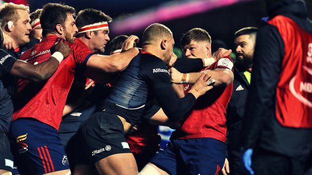 Saturday at Allianz Park saw Munster and Saracens add another chapter to their burgeoning rivalry with an all-out scuffle spilling over onto the sidelines and riling everyone in the ground up. Munster medic Dr. Jamie Kearns was in the eye of this storm as he exchanged words with Saracens hooker Jamie George and sparked and all-in meleé.