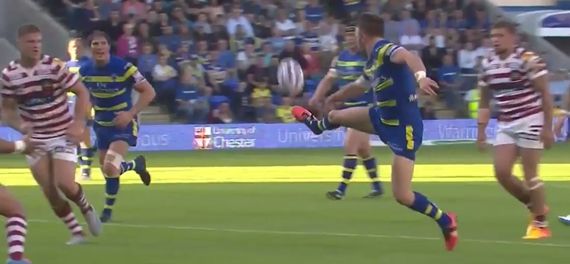 Warrington Wolves taking on the Wigan Warriors in the Super League but, whatever the result, no-one will be talking about anything other than the first try of the night.