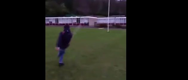 Posted by FollowRugby, it features a guy kicking a drop goal rabona style, while wearing street clothes.