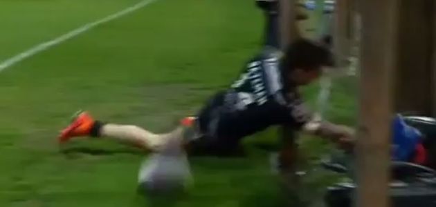 The ball took a wicked bounce forward and Bateman’s attempt to dot down resulted in a disastrous shoulder injury.