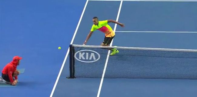 During one lengthy rally, Kyrgios came in to the net and over-hit a drop shot to allow Seppi to try a cheeky cross-court pass. The ball thudded off the top of the net and Kygrios showed cat-like reactions to chase it down and hit a ridiculous around-the-post winner.